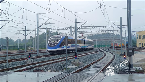 市域鐵路璧銅線進(jìn)行接觸網(wǎng)熱滑試驗(yàn)。華龍網(wǎng)記者 劉艷 攝市域鐵路璧銅線熱滑試驗(yàn)完成